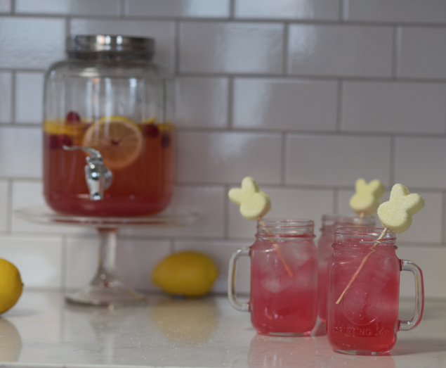I made both yellow and pink bunny peeps. I used the yellow ones for the lemonade and displayed the pink ones on a bed of sugar on the table.